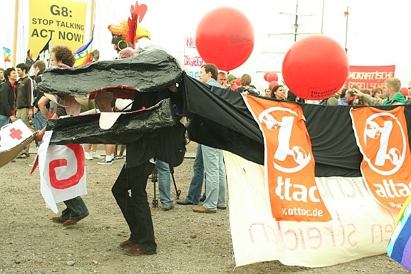 ROSTOCK -- Vandaag betoogden zo´n 80.000 memsen tegen de G8-top die volgende week doorgaat. De betoging startte vanaf 2 punten: een groep vertrok vanaf het station en de andere vanaf Schutower Kreuz. De betoging verliep heel rustig. Hier volgt een verslag van de groep die vertrok vanaf Schutower Kreutz.