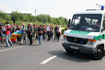 Deze actie was gericht op de convooien van de wereldleiders die vanaf de luchthaven naar Heiligendamm moeten.