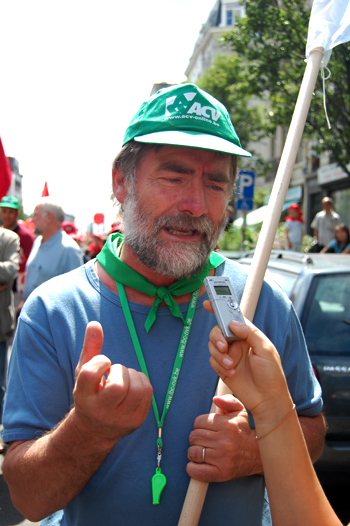 Jan Dereymaeker werkt bij LBC. “De mensen zonder papieren hebben het in onze maatschappij enorm moeilijk. Het zijn mensen die in enorme onzekerheid leven. Ik heb schrik dat de volgende regering niets zal doen. Er lopen momenteel dertigduizend aanvragen voor regularisatie. Het is een heel belangrijk signaal dat de vakbonden hebben gemobiliseerd en deze actie ondersteunen. Wij ondersteunen de eisen van de vluchtelingenbeweging UDEP.