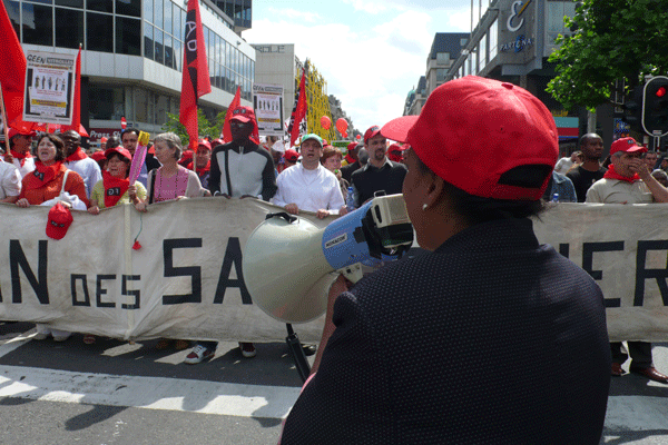 Opvallend veel vakbondsmensen manifesteerden gisteren in Brussel tegen de willekeur of hypocrisie waarbij men weigert te regulariseren, maar tegelijk de ogen sluit voor de clandestini-teit waardoor de mensen zonder papieren in maffieuze circuits kunnen uitgebuit worden. Enkel een regularisatie geeft de vele illegale werknemers de kans op een waardige job om waardig te kunnen leven