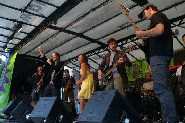 Frederic, Yasmin (zang), Koen (trompet), Pieter (trombone), Hans (altsax), Wannes (tenorsax), Bos (orgel), Rik (gitaar), Bert (bas) en Erik (Drums)