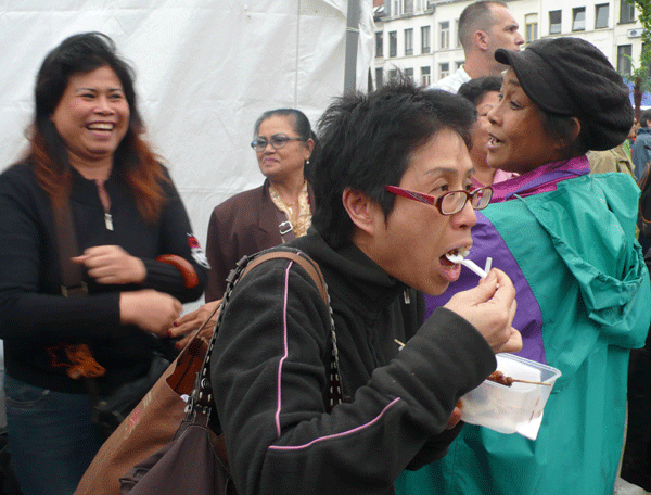 Ondanks de regenachtige avond liep het plein toch vol en werd er serieus gefeest door al de verschillende bevolkingsgroepen, zowel Afrikanen, Belgen, Chinezen, en zo meer en ook homo's en lesbische mensen; hier is trouwens de buurt waar veel Chinese mensen wonen en ook de homoscene van Antwerpen in de Van Schoonhoven-straat viert mee feest. Op het plein zelf zijn het dan weer hoofdzakelijk Afrikaanse bewoners