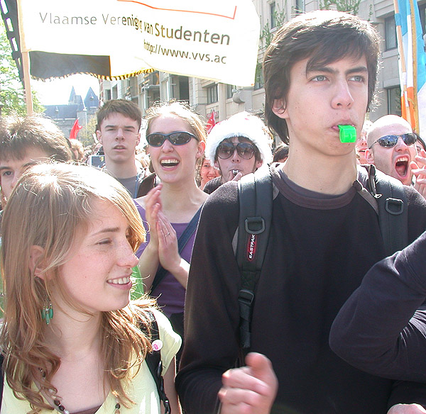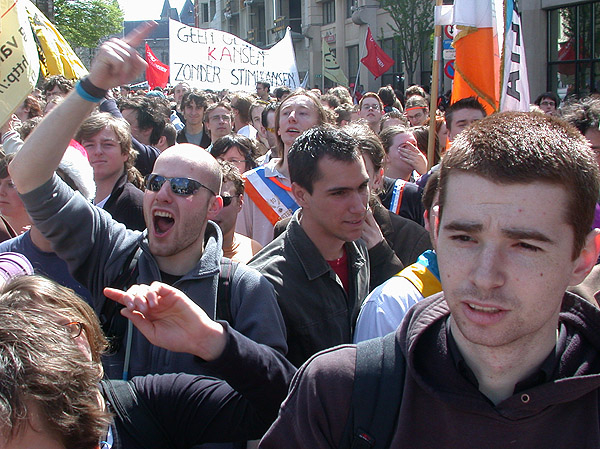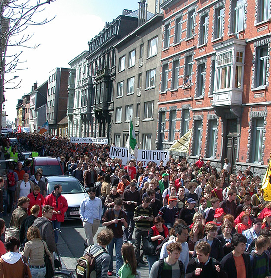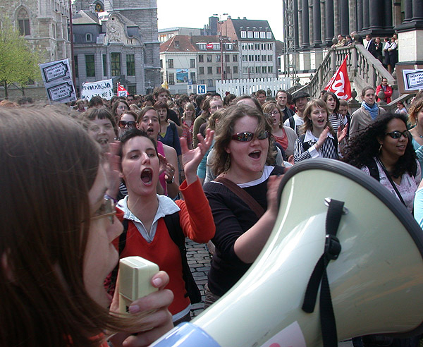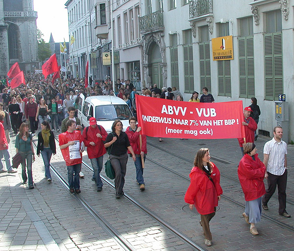GENT -- Enkele duizenden studenten vulden vandaag de straten van Gent. Een betoging tegen de plannen van Minister Frank Vandenbroucke (SP.A) om te besparen op het hoger onderwijs. De manifestatie in Gent was de laatste van drie. Eerder waren er al protestacties in Brussel en Antwerpen. Vandenbroucke ging voor Pasen naar buiten komen met een aangepast plan maar dat werd uitgesteld. “Met de grote opkomst van vandaag willen de studenten nog maar eens tonen dat ze de besparingen niet zomaar zullen slikken,” zegt iemand van VVS (Vlaamse Vereniging van Studenten).