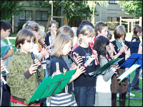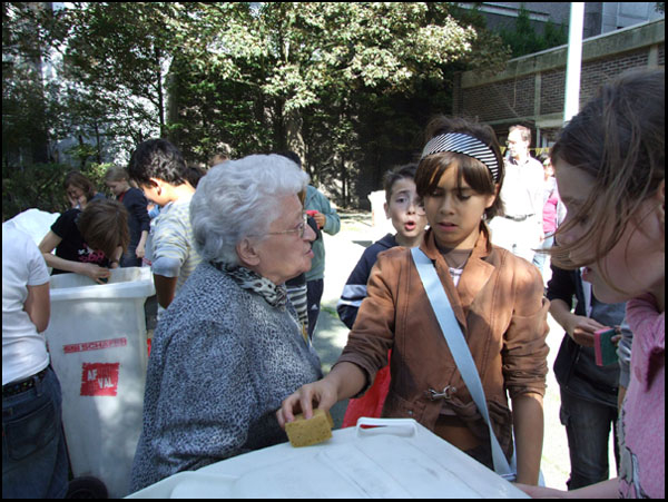 In de namiddag hebben zo'n 25 kinderen van de lagere school Musica uit de lange Ridderstraat vergast op een mooi concert (tussen de sociale blokken). Na het concert vond er opnieuw een leuke 'poets de Container'-wedstrijd plaats met dezelfde leerlingen? Zo staken ze - met behulp en ervaring van enkele senioren - ook de handen uit de mouwen voor een meer propere buurt.
