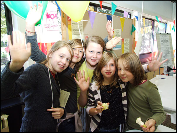 Na het poetsen en de verdeling van de prijzen (iedereen was winnaar..) kregen ze fruit naar keuze (appel of peer) aangeboden en een fruitsap.