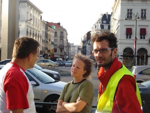 Veel bekend volk uit de Brusselse milieubeweging: Luc Coveliers van NoMo en Claire Scohier van Inter Environnement Bruxelles.