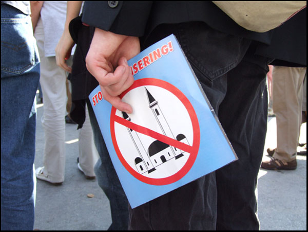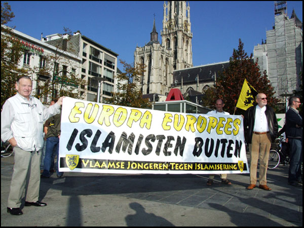 Jullie zeggen "islamisten buiten", maar maken een verbodsteken met een moskee. Gunnen jullie geen enkele moslim de godsdienstvrijheid in België? Of gaat het echt alleen over politieke islam? Waarom gaan jullie dan betogen aan een moskee. Waarschijnlijk omdat jullie ervan uitgaan dat alle moslims voorstander zijn van politieke islam.