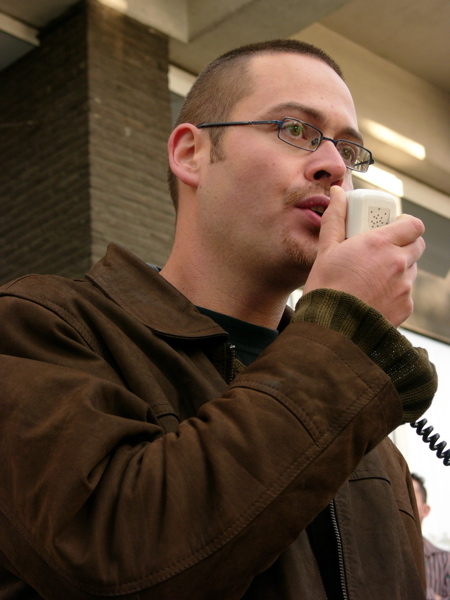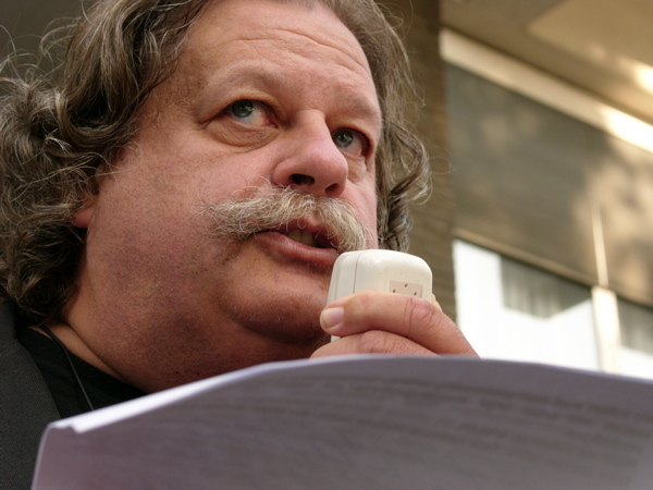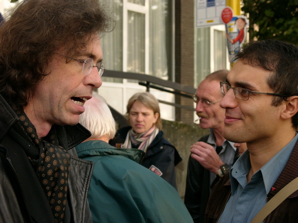 Lieven De Cauter:“Ik sta hier vandaag om de rechstaat te verdedigen, om het recht op vrije meningsuiting te verdedigen en om activisme te verdedigen. Sinds 9/11 is er in Belgie via Europa en onder druk van Amerika een soort van uitzonderingswetgeving ontstaan. Die wetten maken het mogelijk dat mensen die sociale of politieke acties voeren via heel die machinerie van juridisch zeer aanvechtbare wetten kunnen bestempeld worden als leider van een terroristische organisatie. Dat is gewoon onaanvaardvaar en tekent een nieuw klimaat waarin je ook andere processen kunt passsen zoals het proces van Electrabel tegen Greenpeace. Vandaag moeten wij als civiele maatschappij - vakbonden, intellectuelen, kunstenaars, kritische mensen - neen zeggen. We moeten de rechtstaat verdedigen en voor ons is dat de hoofdreden om hier te staan en Bahar met man en macht te verdedigen.”