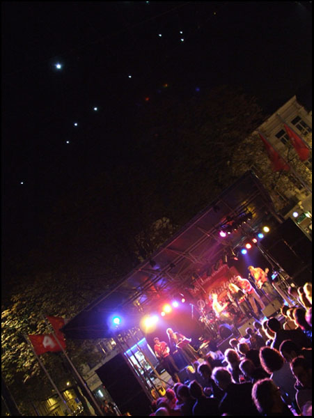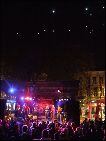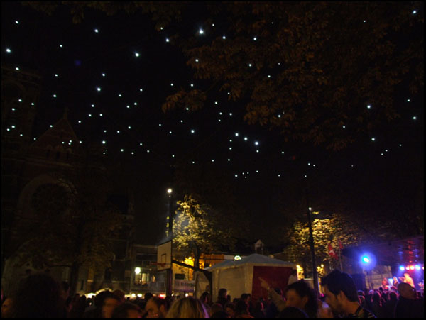 De sterrenhemel ademt niet alleen aan een bijzondere(zomerse)sfeer uit,de sterren zorgen ook voor extra verlichting op het plein.