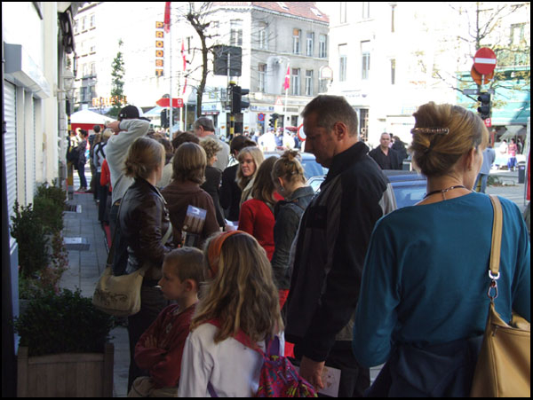 Indymedia fotograaf John Moussiaux ,ging een kijkje nemen bij Chocolatier Goossens in de Isabellalei in Antwerpen waar ruim 3.000 mensen een bezoek brachten(zelfde cijfers in 2006)