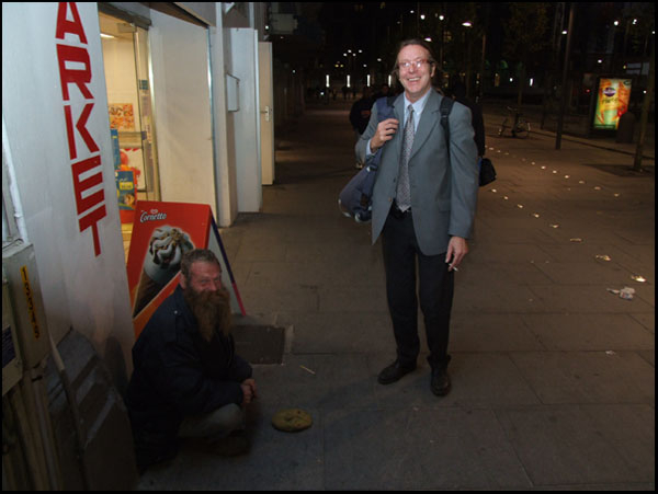 De wereld voor mij zou miljarden 'Louis' mogen hebben. Vanaf 11 uur tot laat in den avond, 7 dagen op 7, door alle weeromstandigheden is hij daar. "Mensen geven meer bij slecht weer...", zegt hij. Maar voor het geld doet hij het zeker ook niet (meer): tijdens mijn verblijf is er geen enkel (lees: geen enkele) cent bijgekomen in "zijn" bruine pet .