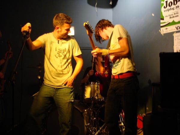 Ik ben gisteren samen met enkele groepsleden van Viva Martoni (Lina, zangeres en ego, Andy, bassist en versierder en Steven, zanger en boeddhistisch monnik in spe) naar Buksus gaan kijken in jeugdhuis 't Job in Sint-Job-in-'t-Goor. De reden daarvoor was een minifestivalletje met twee groepen, waarbij de drummer van Buskus, Antoni Foscez, ook drumt bij Viva Martoni en gisteren 19 werd. Buskus is een no-nonsense rockband, waarvan de oprichtende leden (Wim, gitarist; Seger, bassist met hoog Adriaan Van Hoof-gehalte, i.e. ranzige grijns op het gelaat als ie meisjes versiert, dixit interview met Felix Da Housecat in Focus Knack, en Antoni, drumfenomeen in opleiding) elkaar kennen sinds hun kindertijd. De zanger, Jimmy, ook bekend als drummer bij Trashed little ponies, is de nieuwste aanwinst. Deze is een leuke verschijning met een energieke podiumact, met interactie met het publiek en een dansstijl die dicht aanleunt bij volgend filmpje.