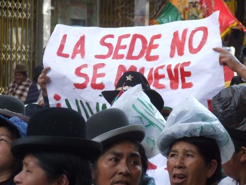 De afgelopen weken heeft een partij-overkoepelende commissie – onder leiding van vice-president Garcia Linera – verder onderhandeld over de kwestie die Bolivia al maanden in haar greep houdt: het al dan niet verplaatsen van de regeringszetel naar Sucre. De MAS wil dat de regering in La Paz blijft, de oppositie eist dat Sucre de regering zal gaan huisvesten. De MAS zoekt naar een uitweg uit de impasse, en probeert nu de GV te verhuizen naar Oruro, vlakbij La Paz. De oppositie steigert. De speciale commissie werd ondertussen opgeheven omdat Sucre het ultieme compromisvoorstel niet accepteerde. Het risico bestaat dat de GV nu in tweeën scheurt: MAS met haar aanhangers in Oruro, de oppositie in Sucre. De eenheid in het land is compleet zoek. De kwestie legt een aantal breuklijnen bloot die de Boliviaanse bevolking in tweeën deelt.