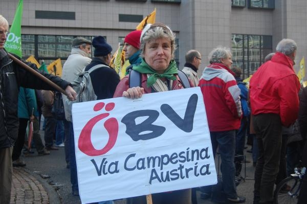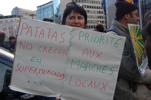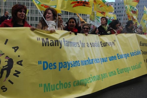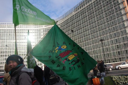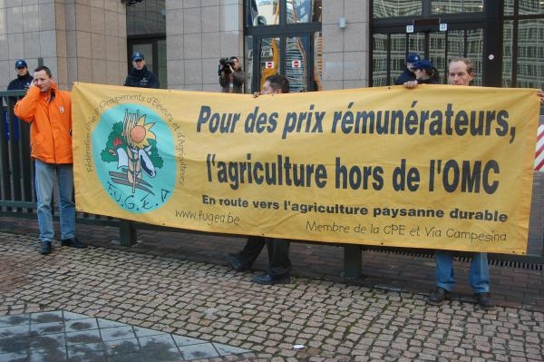 BRUSSEL - Maandag betoogden 350 Europese boeren in Brussel tegen het op liberale leest geschoeide Gezamelijke Europese Landbouwbeleid. De betoging was georganiseerd door de Europese afdeling van de internationale boerenbeweging Via Campesina.