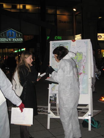 Westerse regeringen weigeren om de Israëlische bezetting een halt toe te roepen. Zij laten toe dat er een muur, Apartheidswegen en joodse nederzettingen worden gebouwd op Palestijnse grond, dat Palestina economisch wordt gewurgd. Het Palestijnse grondgebied geraakt versnipperd in bantoestans, met controleposten, militaire invasies, vernielingen van infrastructuur, enz. Daarom moeten we onze verantwoordelijkheid nemen als burger en onze macht tonen als consument. Op verschillende plaatsen in België wordt er actie gevoerd. Met het Gents Actieplatform Palestina (GAPP) sluiten we ons aan bij deze BDS-campagne. Het procédé is simpel. Laat Israëlische producten in de winkelrekken liggen, spreek de verantwoordelijken van Delhaize, Colruyt, Carrefour,... aan. Geen Israëlische producten in onze rekken zolang Israël het internationaal recht met de voeten treedt!
