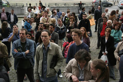 BRUXXEL - 15.05.006 - - Environ 200 personnes se sont réunies en début de soirée face au Palais de Justice, à l'appel du F.A.F. [ Front Anti-Fasciste ] pour protester contre les crimes à caractère racistes et la montée du fascisme. Lors des prises de paroles les intervenants, représentants des grands partis politiques et associations, on lancé divers pistes pour lutter contre l'extrême droite et on appelé à la grande manifestation d'Anvers qui aura lieu le 26 mai.