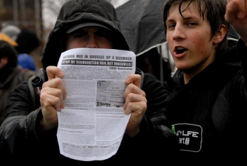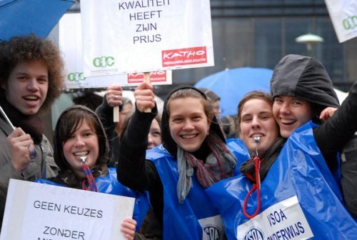 Vandaag trotseerden ruim 2000 studenten en personeel van het hoger onderwijs uit heel Vlaanderen de regen en gure wind om hun ongenoegen te tonen over het financieringsdecreet van minister Frank Vandenbroucke. Met hun tienkamp daagden de organisatoren - VVS, de Vlaamse Vereniging van Studenten, COC, ACV openbare diensten en LBC, VSOA en ACLVB, de onderwijsminister, de voltallige Vlaamse Regering en het parlement uit om eindelijk werk te maken van gelijke kansen in het financieringsdecreet. Ze hopen zo het decreet nog grondig bij te sturen voor het te laat is.