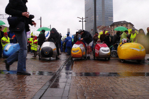 deze groep uit Nederland kwam afgezakt in wel zeer speciale voertuigen, het deed'n beetje denken aan de Noormannen met hun snekken, de Nederlanders met hun velomobielen(http://www.velomobiel.nl)