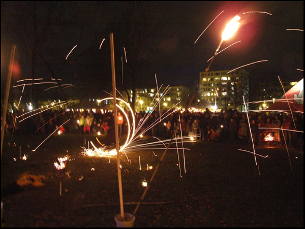 Gratis konden de aanwezigers genieten van een groot vuurshow gebraht door de Antwerpse groep Flamine.Van bijna op de schoot van het publiek verzorgde deze vuurartiesten spectaculaire acts.