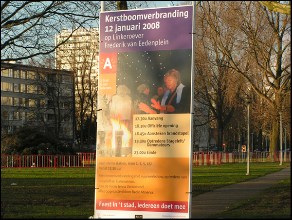 Zaterdag vond voor de derde keer ,op de Antwerpse Linkeroever de kerstboomverbranding van Antwerpen plaats.