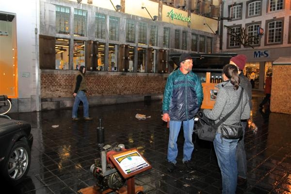 Zaterdag 19 januari tussen 17u en 18u hield het Wereld Sociaal Forum een ludieke actie op de Grote Markt van Hasselt rond energievoorziening en de opwarming van de aarde.