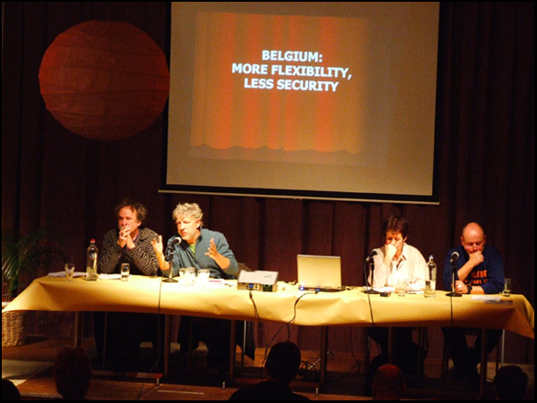 Voor deze debat met de zaal,waren aanwezig,Hendrik Vermeersch(secretaris BBTK BHV,Frank Stappaert,moderator-15DeBe,Marijke Persoone,adjunct algemeen secretaris LBC-NVK,en Egbert Schellenberg,vakbondsbestuurder FNV petrochemie.