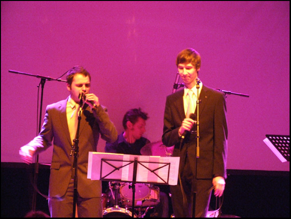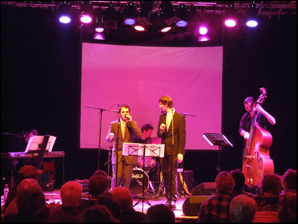 Sam Verhoeven,Steven Colombeen en Michael Zaders brengen de muziek uit de woelige oorlogsjaren weer tot leven.In The Mood,We'll meet again,Lili Marlene,Rum and Coca Cola,La vie en Rose en vele ander onvergetelijke nummers werden in een aangenaam programma gebracht door drie jonge artiesten,die hun sporen al hebben verdiend in de musicalwereld.