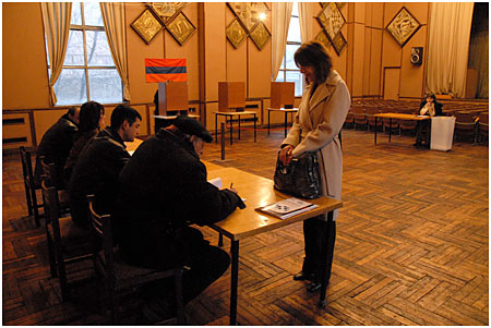 Een kiesbureau in Armenië (foto Oneworld Multimedia 2008)