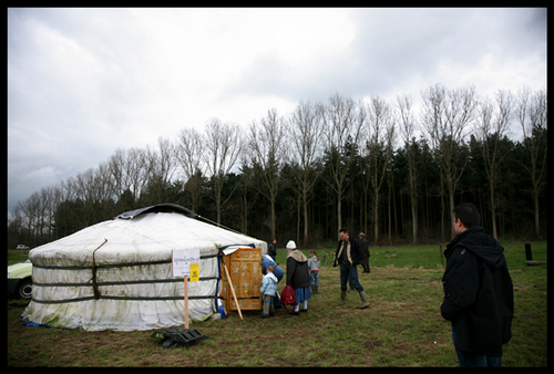 " Frustra poeticas fores compos sui pepulit " Zolang je je zelf inhoudt, klop je tevergeefs op de deuren van de poëzie. Of: poëzie vraagt altijd enige waanzin. Met Plato en Seneca in gedachten dromen wij dat poëzie de sleutel kan zijn die de harten van de Vlaamse en Brugse politici opent. De sleutel ter verdediging van een landschap dat schreeuwt om zorg en goed beheer. Dit zonevreemde bos van vreemde vogels en vogelvrijen is het met zijn voeten spelen meer dan grondig beu. Wij dromen de overheid als een 'agitateur positif' die positieve actie onderneemt voor de zonevreemde bossen. En ze legaliseert in plaats van er de bijl in te zetten. Dit bossenverdriet is groot. www.ggf.be