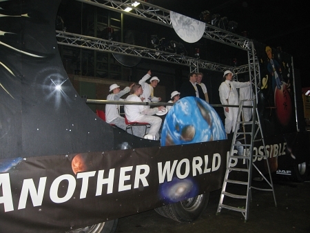 350 jongeren van 21 verschillende verenigingen werkten gedurende maanden rond zelf gekozen thema’s. Iedere praalwagen bracht telkens jongeren van 2 verschillende verenigingen samen, zodat er vanzelf samenwerking ontstond. Rode draad was : « een andere wereld is wel degelijk mogelijk ». De jongeren kregen artistieke en technische ondersteuning van professionals van Deussjevoo, Heg Productions en S2Rent.