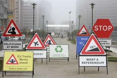 Eu parlement protesteerd maandenlang voor referendum.