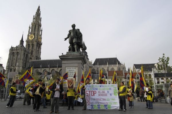 Vandaag was er een kleine optocht van de Tibetaanse vertegenwoordiging en een sit-in op de Groenplaats te Antwerpen naar aanleiding van de verjaardag van de Panchen Lama - dit is de incarnatie van de volgende Dalai Lama - die door de Chinese authoriteiten ontvoerd werd op zesjarige leeftijd. Sindsdien werd niets meer van hem of zijn familie vernomen. De Chinese authoriteiten stelden zelf een Panchen Lama aan om zo de Tibetanen te kunnen manipuleren. Zie de tekst van het pamflet voor meer details.