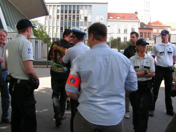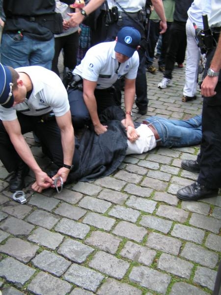Ook de tegenbetogers van 'Jeugd Vlaams Belang' gingen niet vrij uit tijdens hun 'stille' tegenbetoging: vuurwerk materiaal (dat ze hadden meegbracht) werd in beslag genomen door de politie.