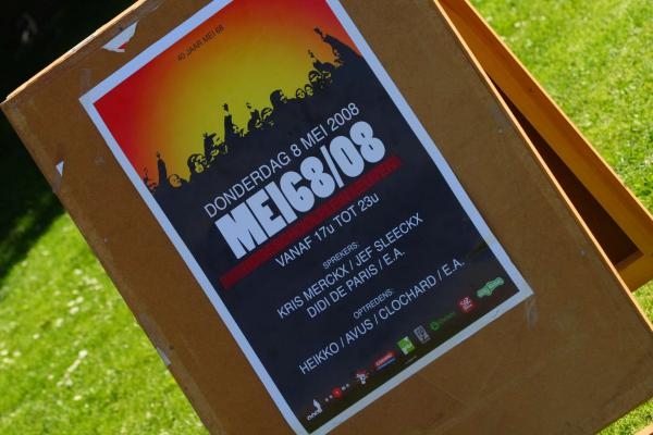 Enkele honderden jongeren en ouderen, waaronder zelfs een aantal mei '68-veterenanen, genoten op donderdag 8 mei van de gezellige sfeer, optreden, sprekers en de mooie zwoele lentenamiddag op het mei '68/'08 festival in Leuven. Vanaf 17u stroomden jongeren af en aan. Tegen de avond geraakte het festivalterrein op het grasveld aan de kruising Parkstraat en Vesaliusstraat behoorlijk gevuld.