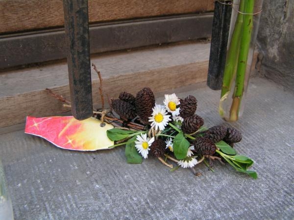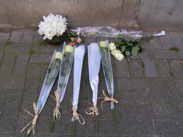 De grootmoeder van Luna kwam in de voormiddag een klein boeket vol kleuren (en hoop) neerleggen.