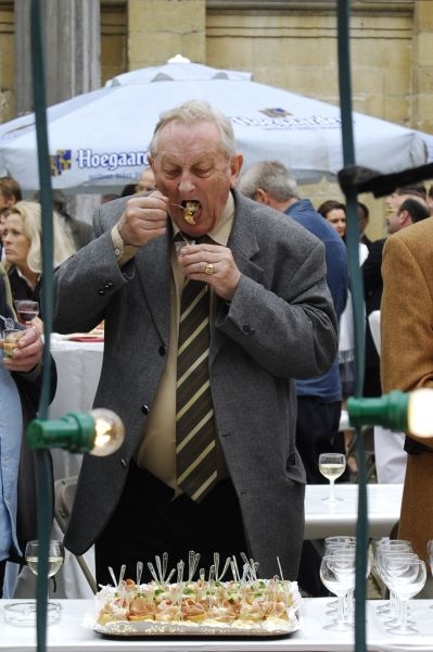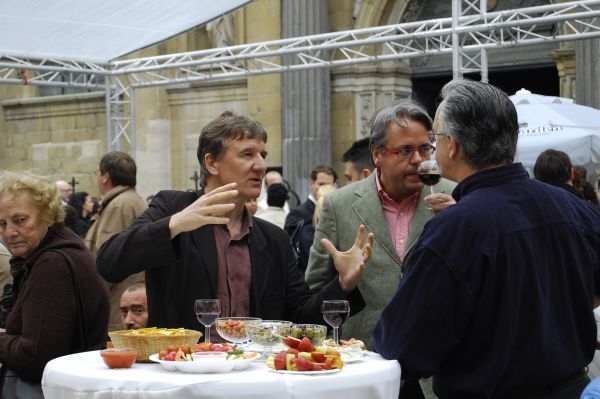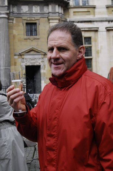 De realiteit was wel iets gematigder. Het weer zat echt niet mee, de dappere aanwezigen moesten temperaturen trotseren die een tiental graden minder was dan een week geleden. Ook de "toespraak" van cultuurschepen Heylen beperkte zich tot een oproep om allen samen te toasten op de hernoemde bibliotheek.