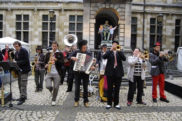 Het Orchestre International du Vetex die in samenstelling even divers zijn als in genrekeuze, wist met zijn enthousiast spektakel de verkleumden te fascineren en zelfs aan het dansen te brengen.