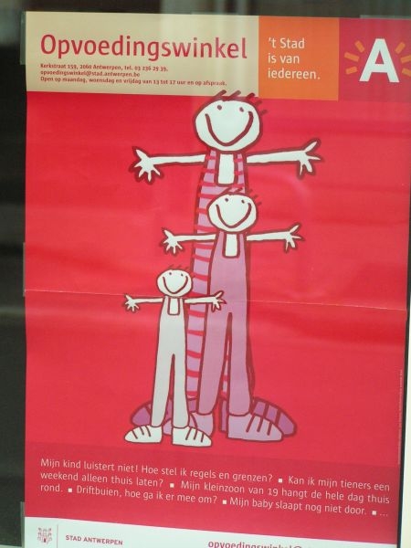 Ouders kunnen er binnenspringen met zeer uitlopende vragen.Met de opvoedingswinkel volgt Antwerpen steden als Genk en Turnhout,waar opvoedingswinkels al langer een succes blijken.