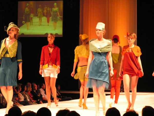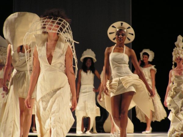 Antwerpen:Studenten 4de graad Plastische Kunsten van het Instituut Sint-Maria tonen hun kunstwerk op de catwalk
