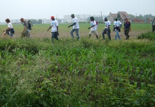 Door een typisch West-Vlaamse landbouwgebied ging het dan verder naar Ardooie, waar we 's middags uitgebreid halt hielden in het provinciaal domein 't Veld. Hier was het Claudine Rogiers, OCMW voorzitter van Lendelede, die ons stond op te wachten. Een zoveelste steunbetuiging, die ons mee moed gaf om in de namiddag over het grondgebied van Pittem verder naar Tielt te wandelen.