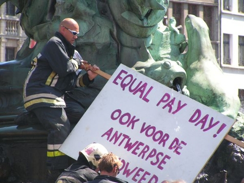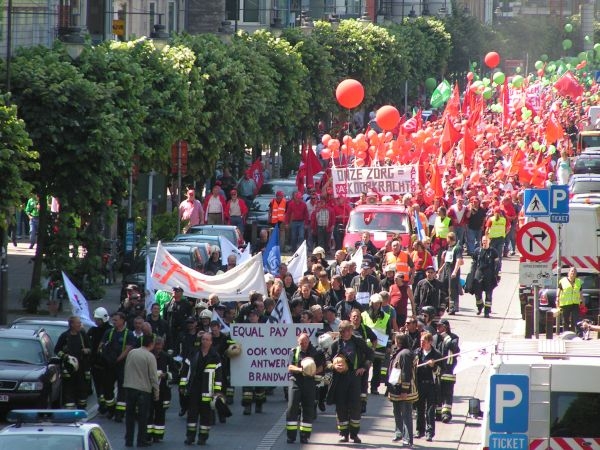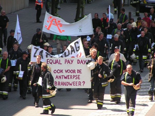 Vooraan in de betoging van de ambtenaren, was er een -sterke- delegatie van de Antwerpse brandweerlui.
