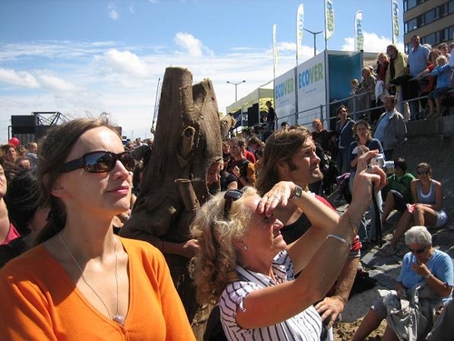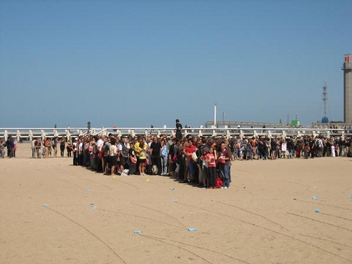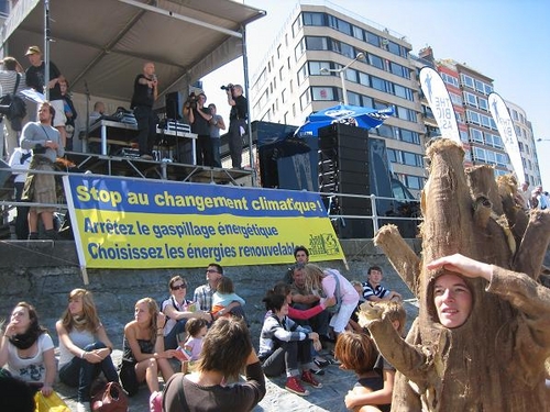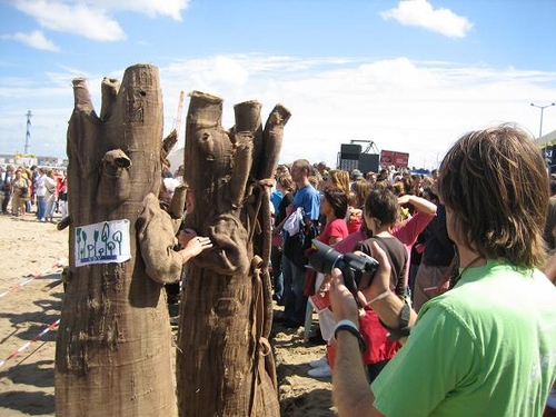 Het was zonnig, er stond een strakke westenwind, er liepen bomen over het strand. Kortom: de ideale omstandigheden voor een groots opgezette klimaatactie.