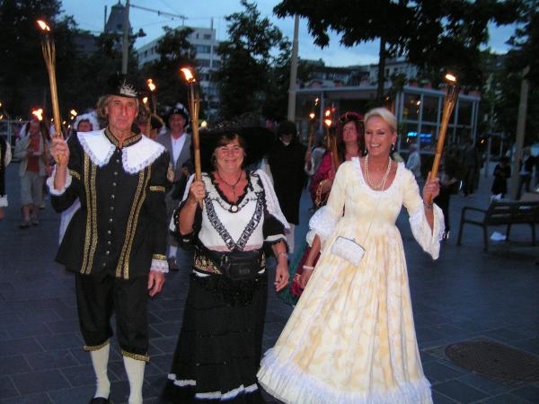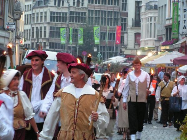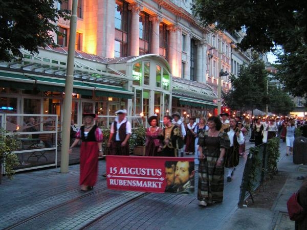 Antwerpen:Fakkeltocht maandagavond door de oude stadskern naar aanleiding van de Rubensmarkt vrijdag.