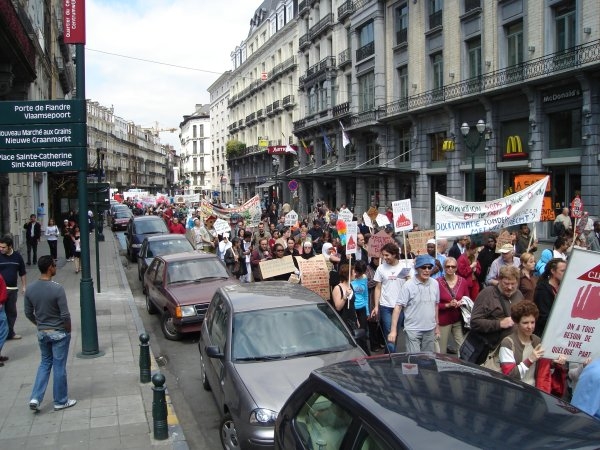 De manifestatie voor een beter huisvestingsbeleid werd georganiseerd door RBDH-BBRoW (Rassemblement Bruxelleois pour le Droit à l'Habitat - Brusselse Bond voor het Recht op Wonen), een koepel van talloze organisaties die zich achter het thema huisvesting hebben geschaard. De drie punten die ze willen realiseren zijn gecontroleerde huurprijzen, meer sociale woningenen en steun om op de privémarkt een woning te kunnen huren indien er geen sociale woningen beschikbaar zijn. Er was veel kritiek op de politiek die haar beloften over huisvesting niet waarmaakt.