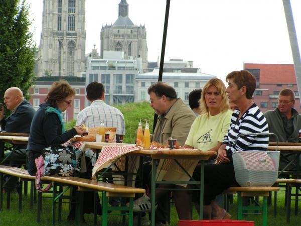 Zondagmiddag kon iedereen komen picknicken aan de Boeienweide op Linkeroever.Elke fietser kreeg een leuke stuurtas en een picknickdeken.Ook een boterkoek, koffie of fruitsap was gratis voor iedereen!