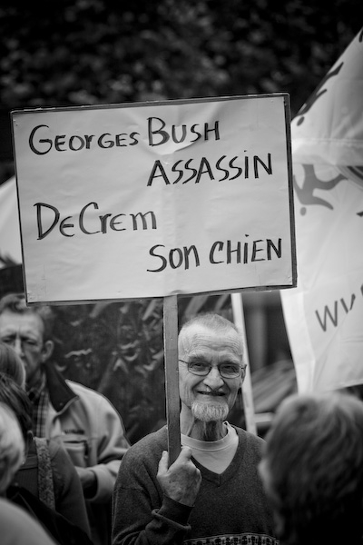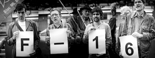 BRUSSEL – Donderdagavond betoogden een honderdtal boze burgers bij het Ministerie van Defensie tegen het sturen van Belgische F-16's naar Afghanistan (en tegen de manier waarop dat gebeurt). De actie werd gedragen door een brede waaier aan vredesorganisaties. Ook enkele parlementsleden van Groen!, Ecolo en Sp.a. namen deel aan de actie.