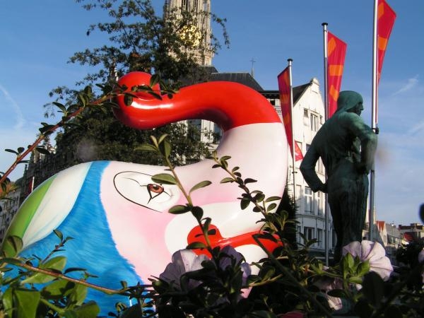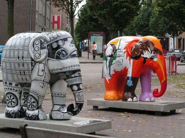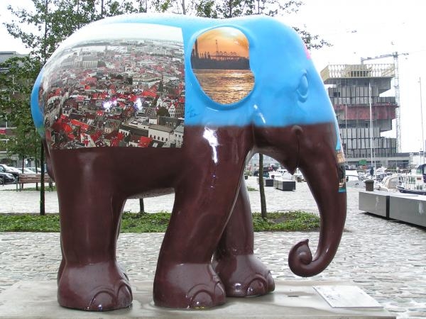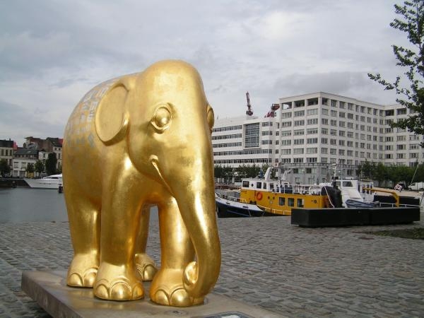 Antwerpen -- Vanaf 6 september (zaterdag dus) zullen zestig kunstolifanten de binnenstad sieren. Wij gingen alvast al een kijkje nemen deze woensdag en vonden er al een vijftigtal. Ze zullen worden verkocht om geld in te zamelen voor een olifantenhospitaal in Thailand.