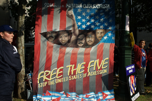 Nous réclamerons la libération immédiate de Gerardo Hernández, Ramón Labañino, Antonio Guerrero, Fernando González et René González.