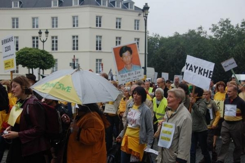 Op zaterdag 13 september 2008 herdachten Actions Birmanie en Amnesty International de “saffraanrevolutie” in naam van de politieke gevangenen. Een hondertal aanwezigen stapten mee van het Barrikadenplein tot aan het Vrijheidsplein.