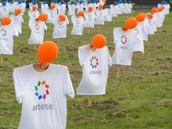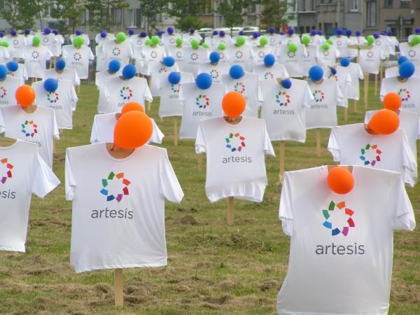 Op verscheidene locaties worden installaties geplaatst met mannequins die een T-shirt dragen met het nieuwe Artesis-logo.